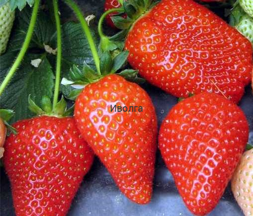 Один плод весит примерно 30 граммов, однако нередко встречаются 50-граммовые: под большим весом урожая цветоносы часто стелятся по земле. Форма ягод представляет собой удлиненный конус. Ягоды образуются одинакового размера.